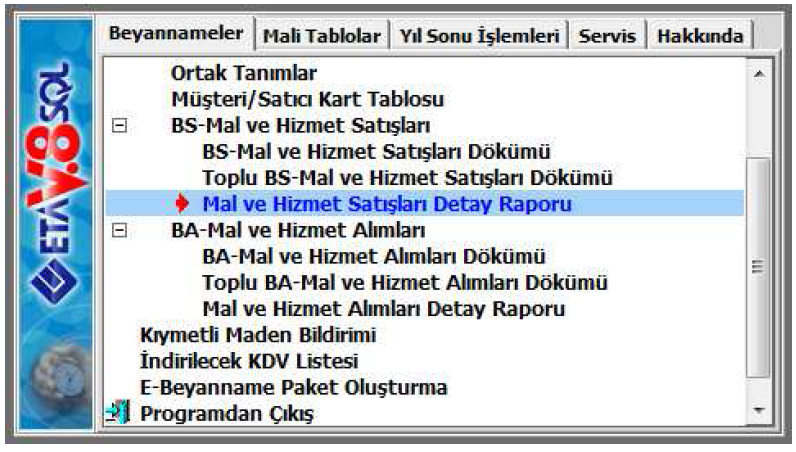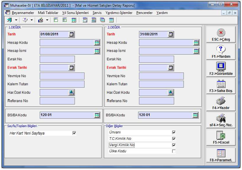 İlgili rapora girilerek listeleme aralıklarına istenen tarih aralığı ve diğer kriterler girilir. BA/BS