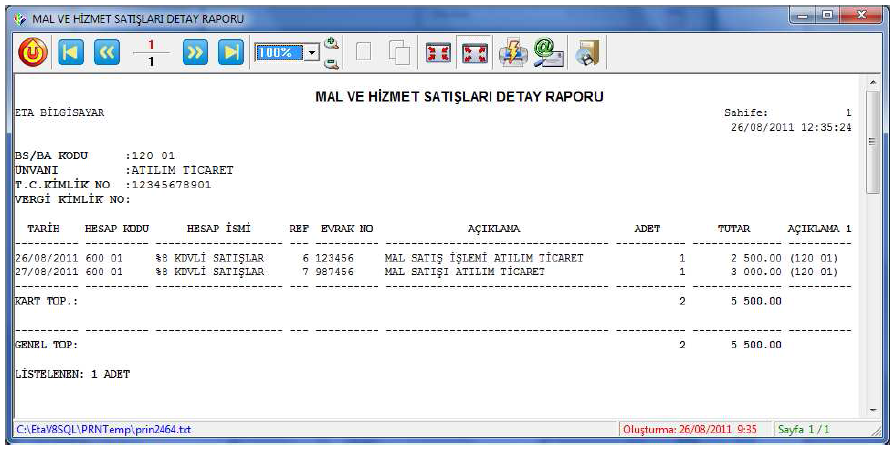 Rapor listeleme kriterleri girildikten sonra F2-Görüntüle butonu ile rapor ekrana listelenir. Rapor